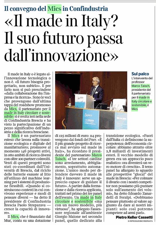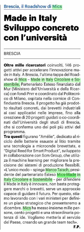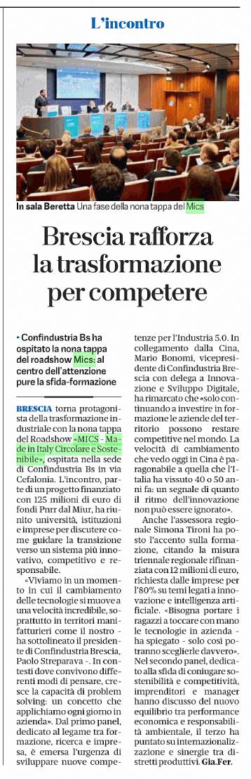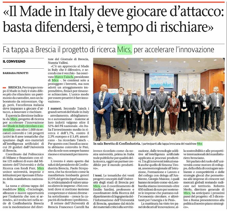Brescia, Roadshow di MICS: imprese, università e istituzioni insieme per il futuro del Made in Italy