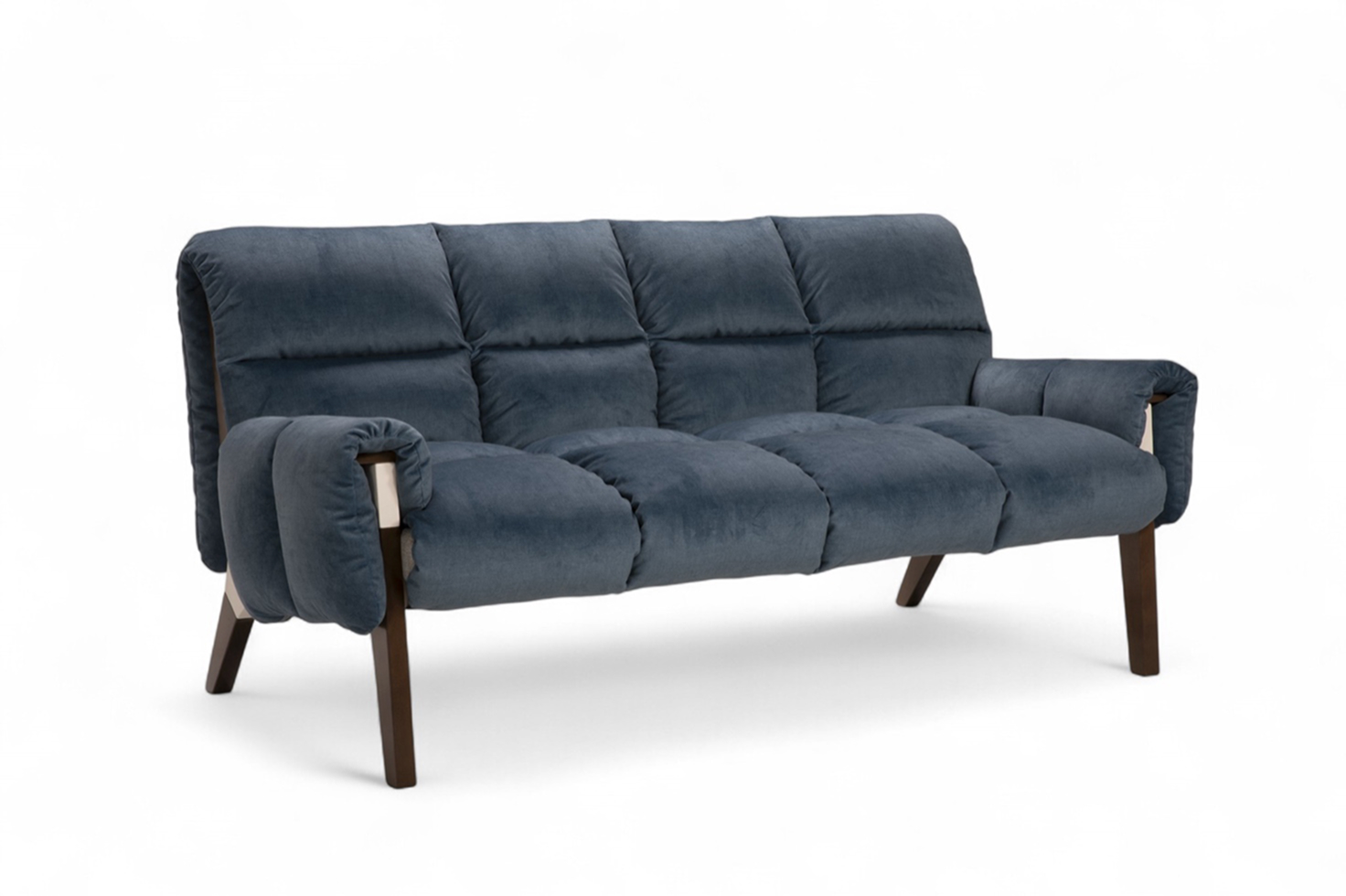 Struttura lignea intelaiata e sistema di molleggiamento fisso. Rivestimento imbottito.