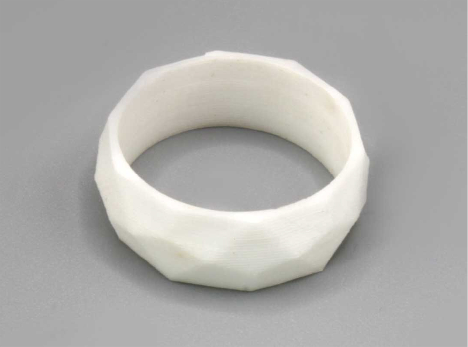 Stampa Fused Filament Fabrication tramite filamento commerciale a base di zirconia bianca. Sinterizzato a 1450°C.