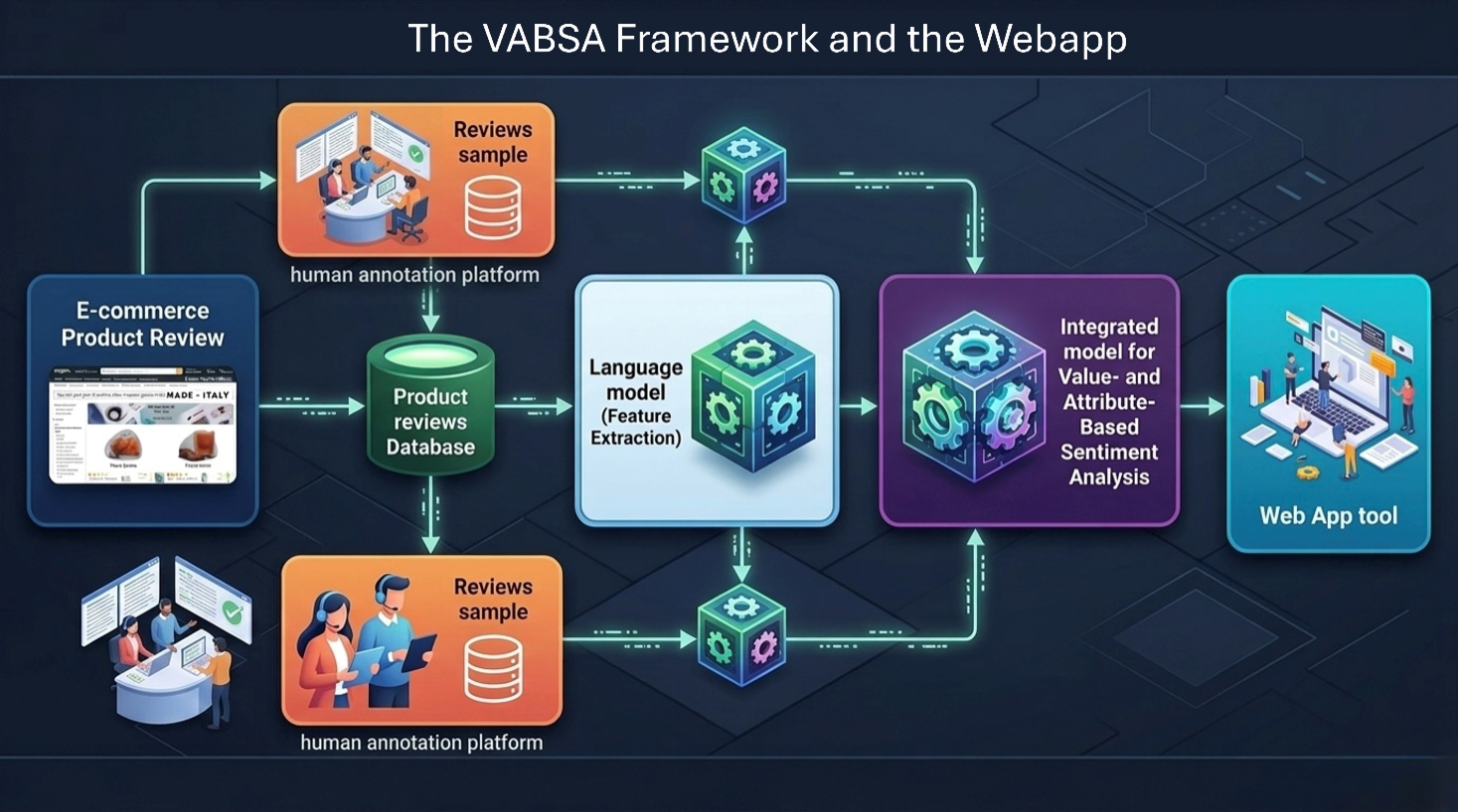 Attraverso tre moduli principali — teoria, dati e modelli — gli utenti possono analizzare i risultati della ricerca, applicare strumenti di clustering per segmentare percezioni di sostenibilità e Made in Italy, e utilizzare VABSA, il modello predittivo sviluppato nel progetto, per identificare valori del consumatore e attributi di prodotto più rilevanti nelle recensioni online, insieme al sentiment associato.