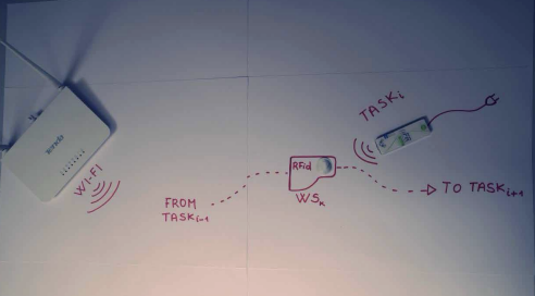 Sistema di tracciabilità basato sulla tecnologia di radiofrequenza a corto raggio per il disegno, la misurazione e la tracciabilità dei processi. Per i processi in cui la trasmissione delle informazioni avviene attraverso foglio di lavoro, questo è reso tracciabile mediante l’applicazione di una etichetta rfid; il passaggio dell’etichetta in prossimità degli nfc-reader, che appartengono all’ambiente in cui è svolta l’attività elementare, grazie al contributo dell’activity owner, permette di registrare tale evento, così da rivelare ciascuna coppia predecessore-successore (mapping), valutare le date di ingresso-uscita per ciascuna attività (misurazione) e stabilire la posizione dell’etichetta e lo stato di avanzamento del processo (tracciabilità).