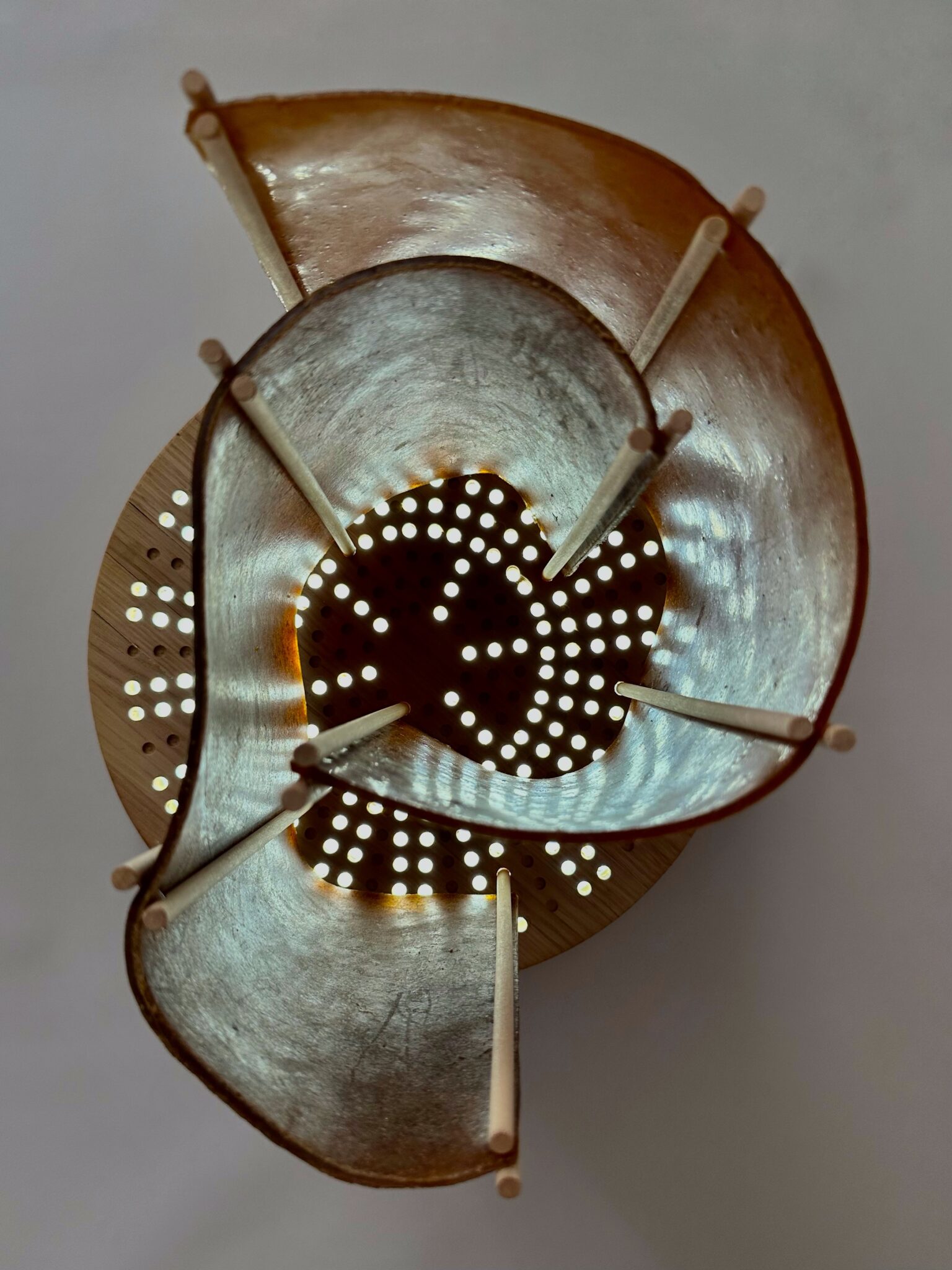 Il progetto segue un approccio modulare: intercambiando i dischi forati e spostando e componendo in diverse modalità i diffusori è possibile modificare l’aspetto della lampada, consentendo diverse configurazioni sia luminose sia estetiche.