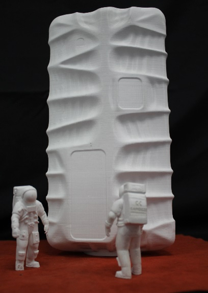 Utilizzando un polimero termoplastico totalmente riciclato – ABS caricato con vetro trattato UV – in una stampante ibrida Masterprint (di Ingersoll Machine Tool) con tecnologia FGF (Fused Granulate Fabrication), è stata terminata la costruzione del modulo analogico lunare.