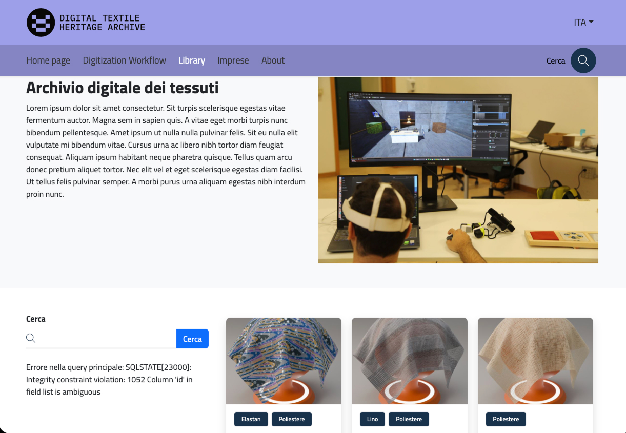 Concepite sia come archivio sia come piattaforma collaborativa, consente alle aziende tessili del Made in Italy di caricare i propri tessuti digitalizzati attraverso i tool opensource sviluppati nel progetto e al tempo stesso, offre a designer, modellatori e professionisti della moda la possibilità di consultarli, scaricarli e integrarli nei propri prototipi virtuali.